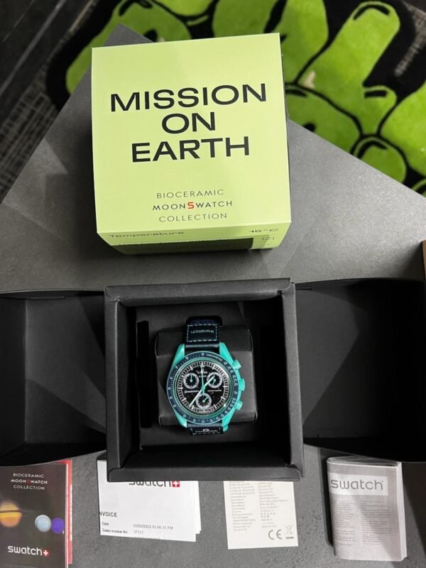 Swatch X Omega Bioceramic Moonswatch Mission To The Moon Earth Blue With Kit